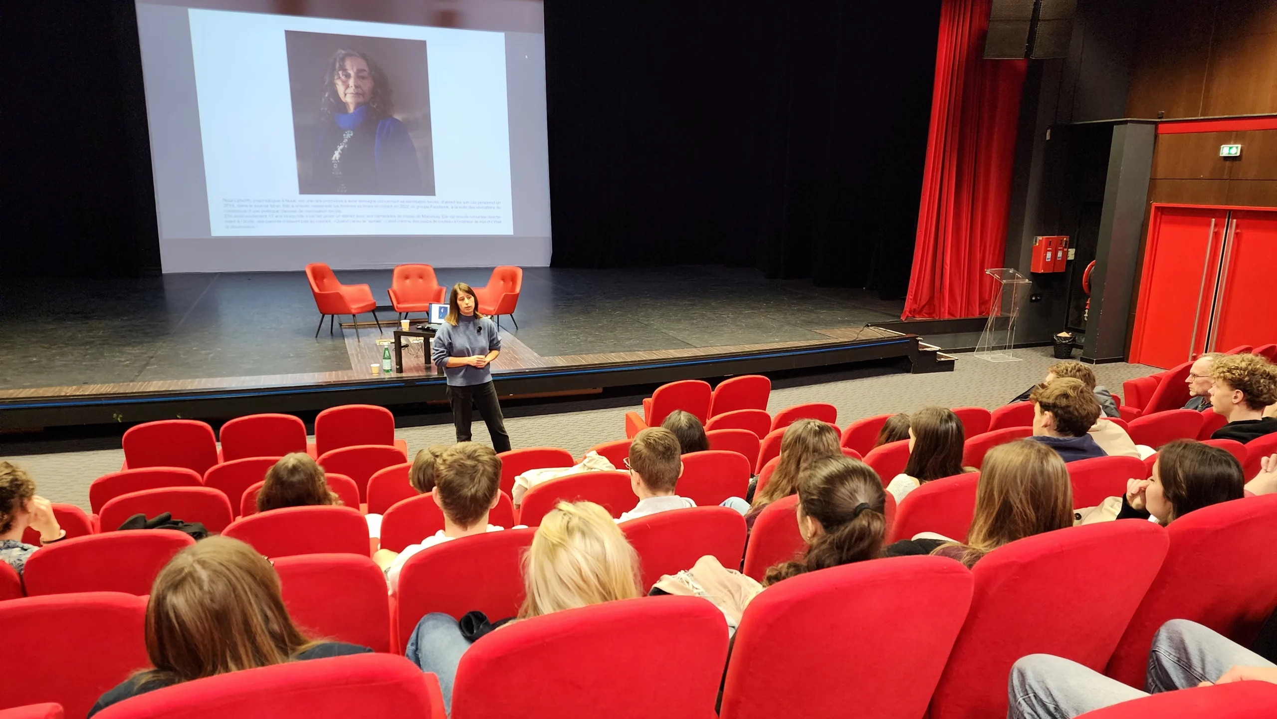 À l’issue de la rencontre, Juliette Pavy a pu échanger avec les élèves du journal du lycée, inversant les rôles en acceptant d’être interviewée et filmée dans les lieux mêmes où elle avait passé son adolescence.