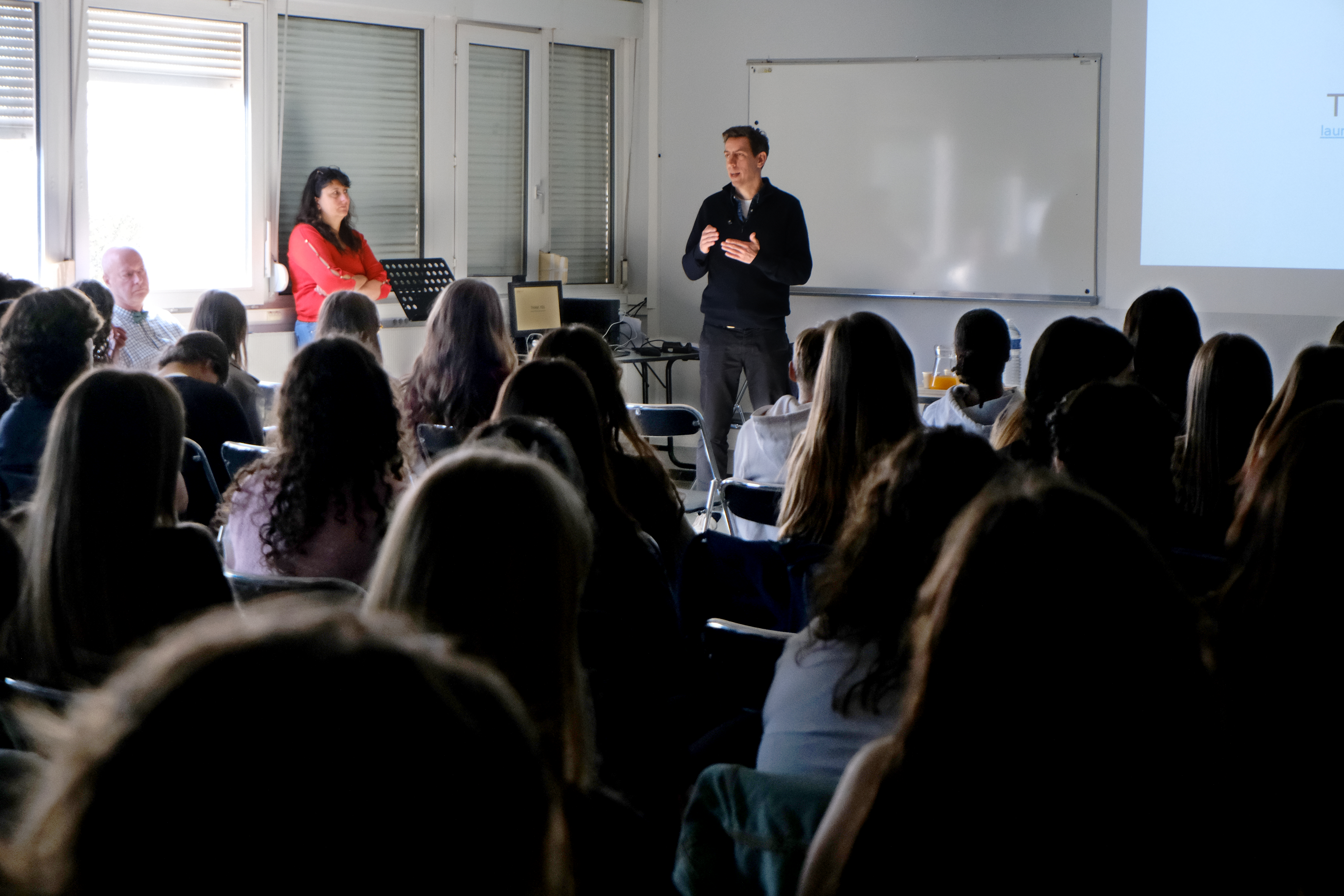 Ce parcours inspirant a entraîné plusieurs questions des élèves notamment sur les enjeux de telles enquêtes sur sa sécurité, s’il avait fait face à des représailles ou des tentatives de corruption. Laurent Richard leur a expliqué qu’il avait été attaqué en justice et menacé de mort, ce qui est fréquent pour les journalistes. Il fait donc relire son travail journalistique par des avocats : « Dès l’instant où on s’exprime publiquement, on a un vrai devoir de prudence. Pour les journalistes, c’est très contrôlé, on doit vérifier ce qu’on dit. » Quant à sa première enquête, il a impressionné les élèves en leur révélant s’être infiltré dans une secte. La question de L’IA et des réseaux sociaux est également revenue. Laurent Richard s’est avoué inquiet de l’impact que les réseaux peuvent avoir sur l’information, notamment avec les algorithmes et la prolifération des fake news, amplifiée par l’intelligence artificielle. Pour lui, le problème vient du manque de régulation face à la vitesse d’évolution de cet outil.