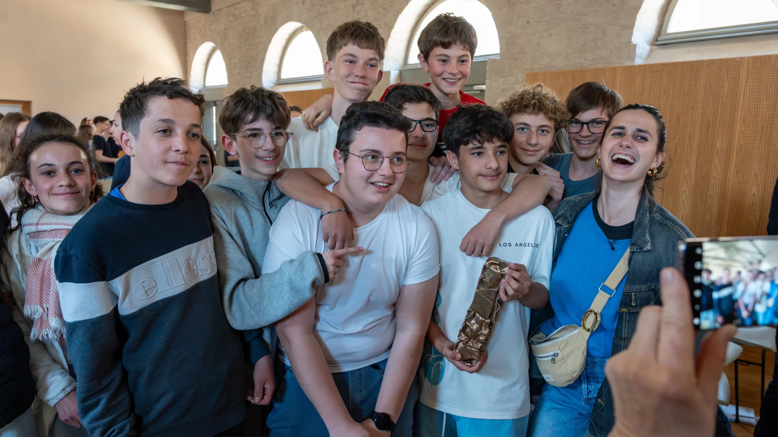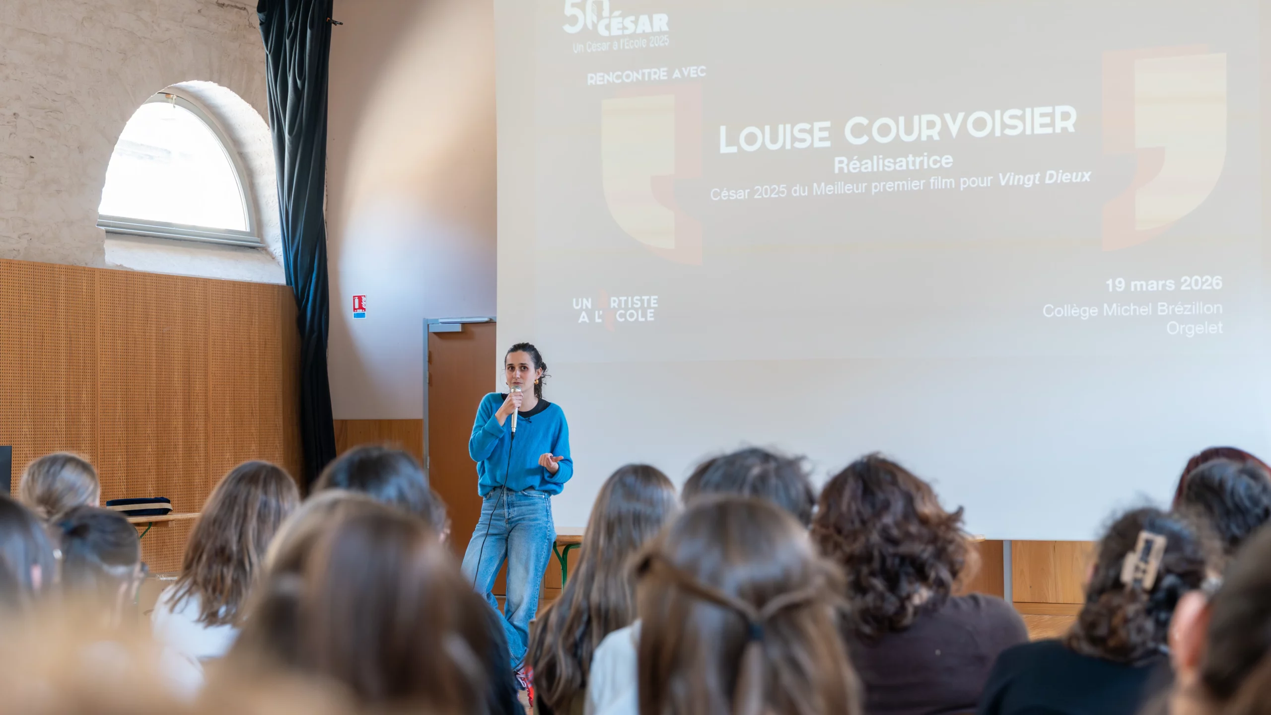 Dans le cadre du dispositif Un César à l’école, Louise Courvoisier est retournée dans son ancien collège, Michel Brézillon à Orgelet, pour y rencontrer les élèves et répondre à leurs questions autour de son parcours, de sa vision du cinéma et de son premier long métrage, Vingt Dieux.