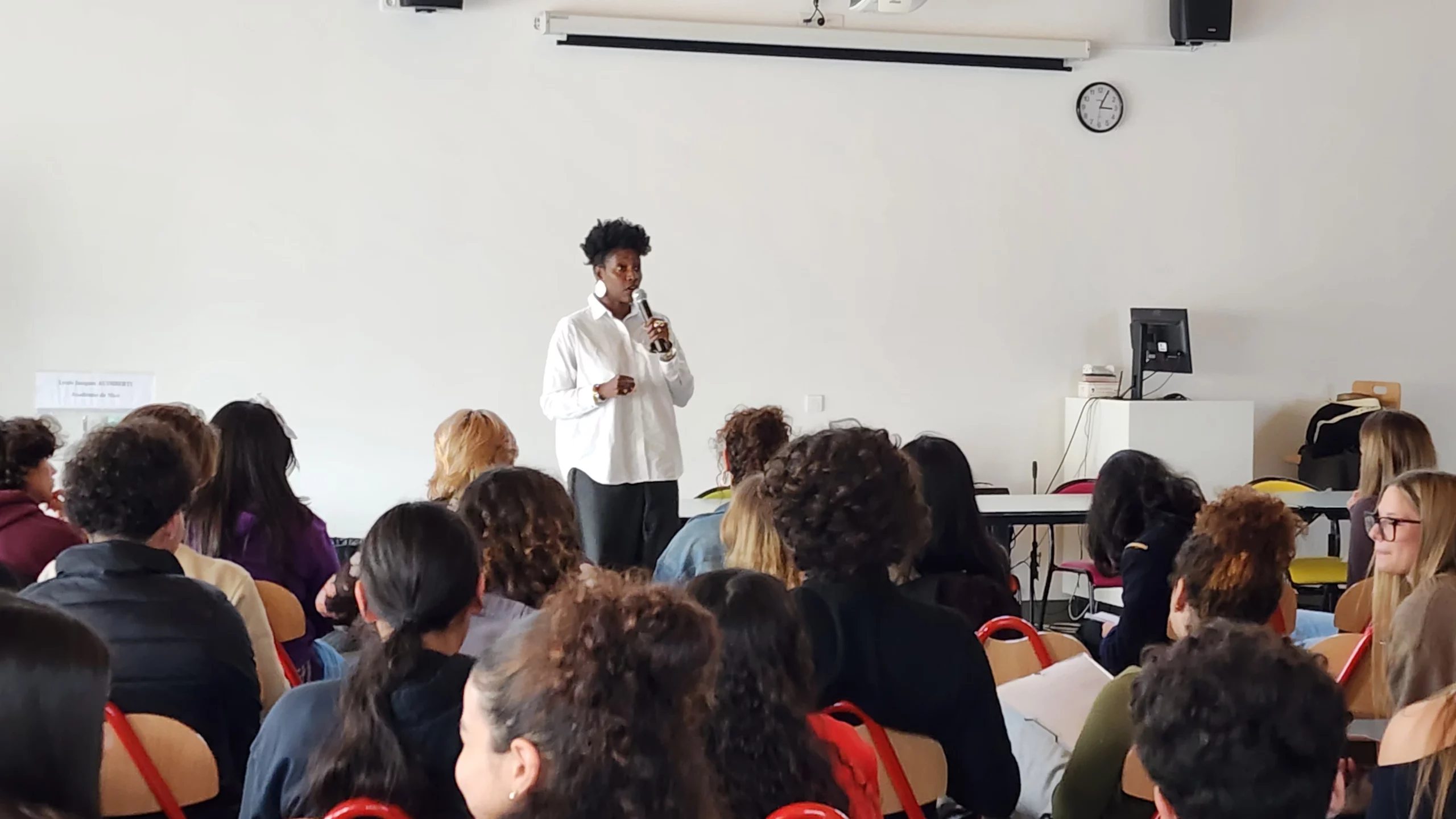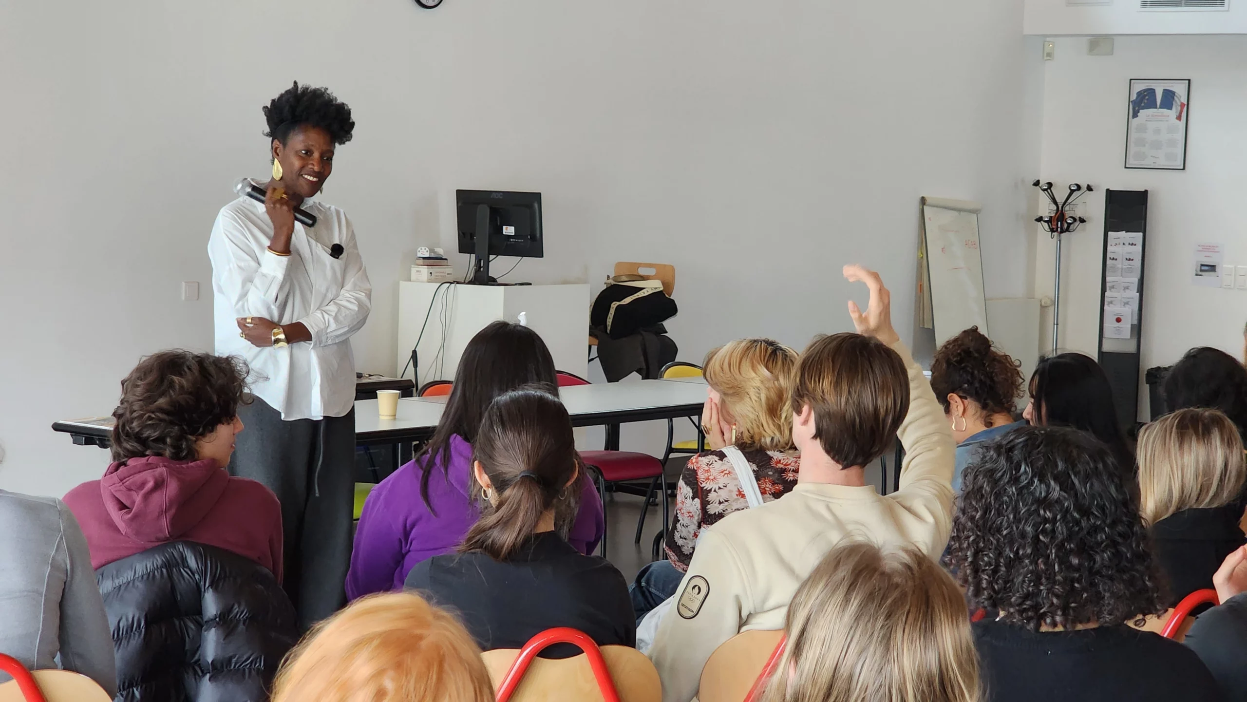 Très curieux, les élèves l’ont globalement questionné sur son quotidien et ses expériences : à quoi ressemble une semaine type ? Souhaite-t-elle adapter certaines de ses pièces au cinéma ? Comment s’opère le processus de mise en scène de ses pièces notamment au niveau de la distribution des rôles et du casting ? Quels obstacles elle a pu rencontrer en tant que femme racisée dans ce milieu ? Ou encore, quel est son point de vue sur la montée de l’IA et son impact sur les carrières artistiques ?