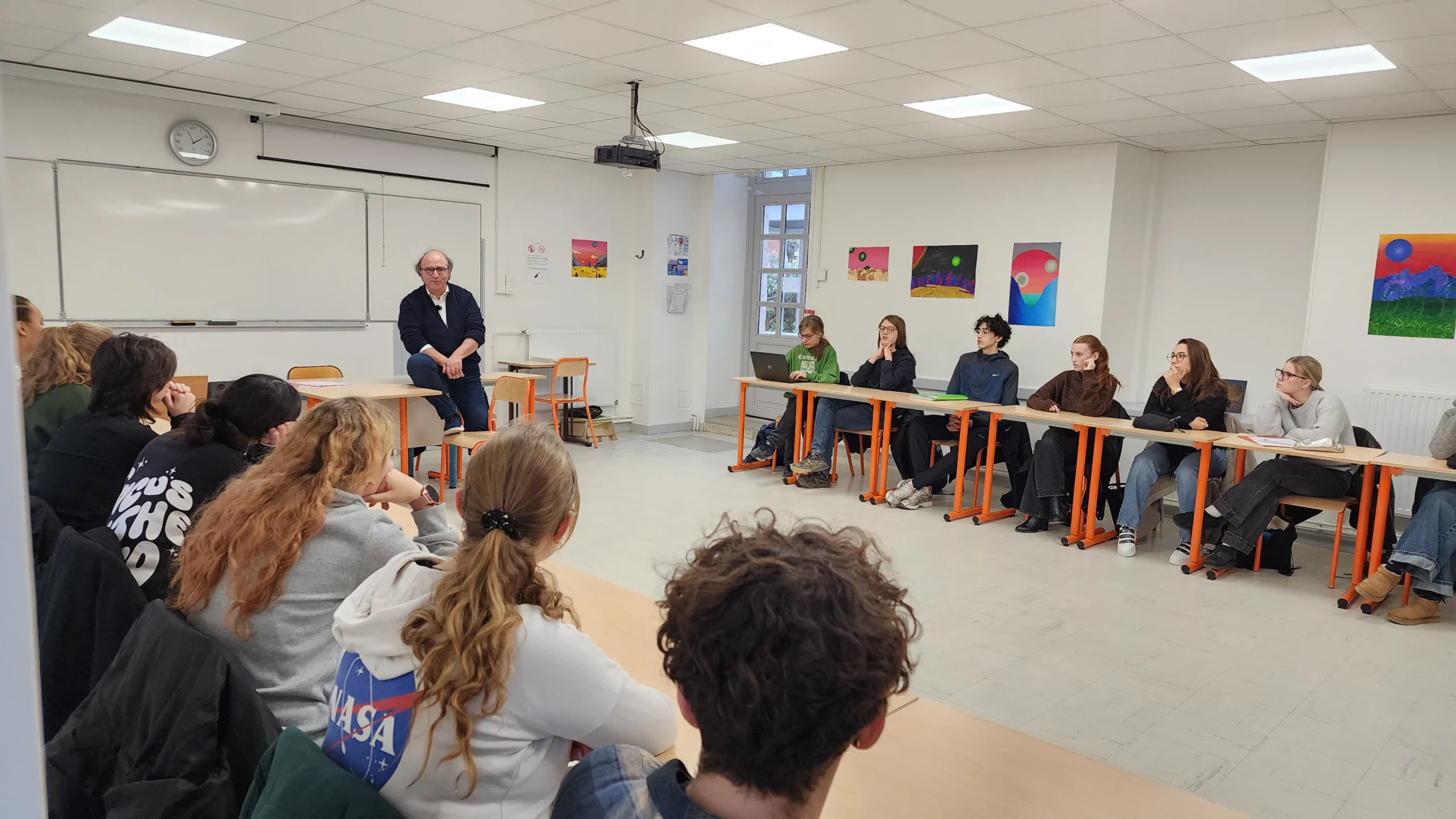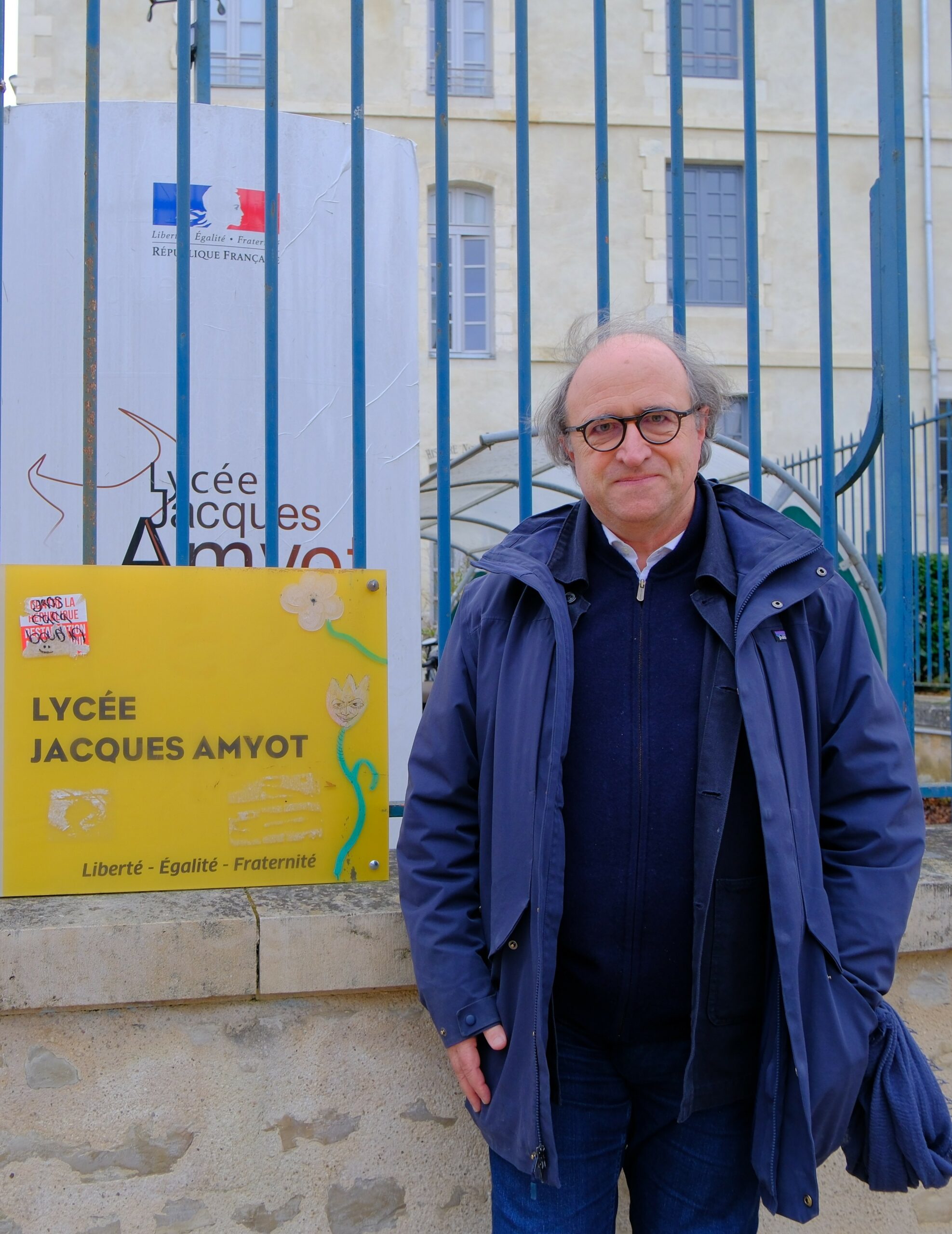 Chaleureusement accueilli par l’équipe pédagogique du lycée Jacques Amyot, Philippe Robinet a retrouvé avec émotion et enthousiasme l’établissement de son adolescence. Il a ensuite rencontré les élèves de l’option Humanité, Littérature et Philosophie lors de deux temps d’échange d’une heure.